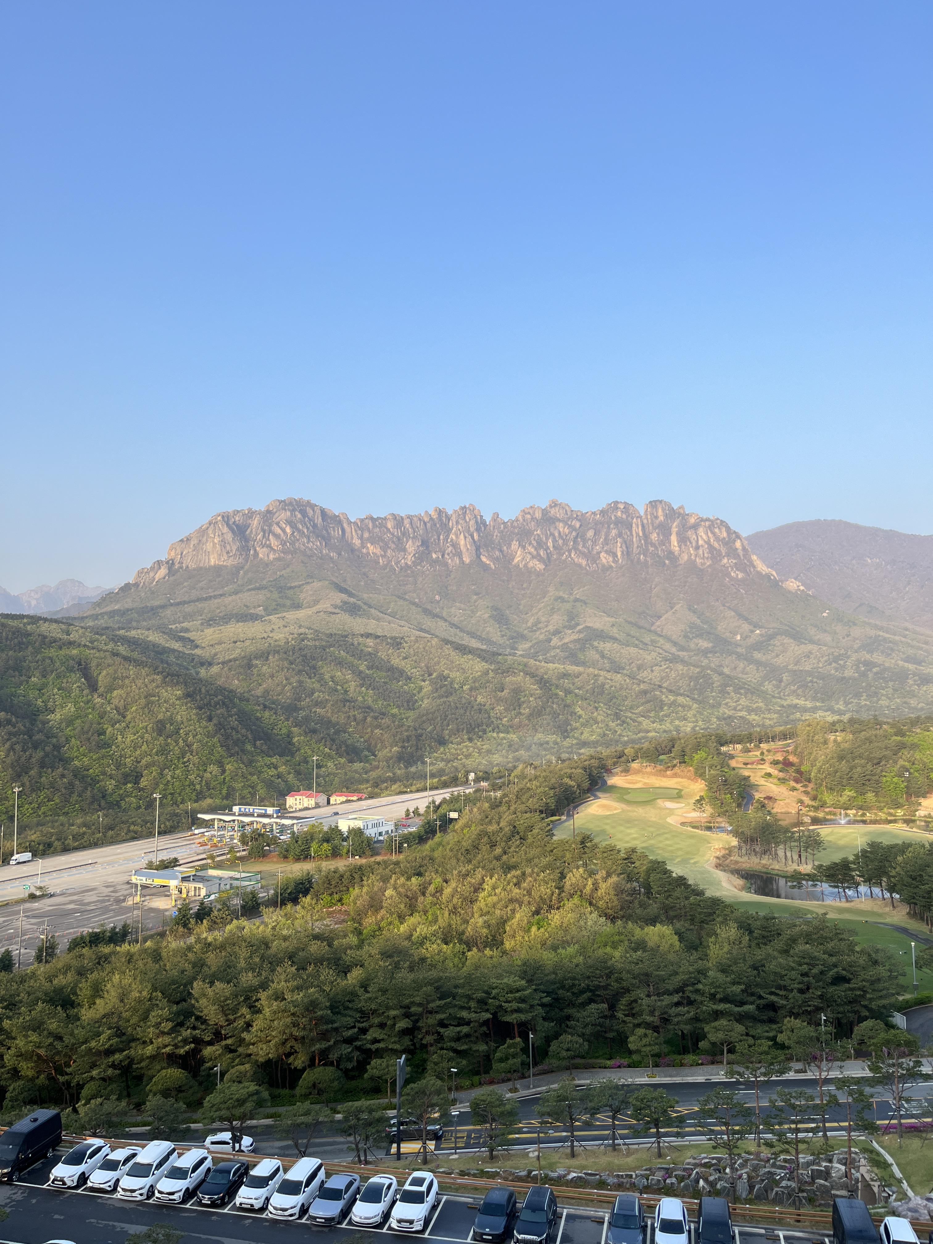 소노펠리체델피노는 예약 할 때 뷰를 선택할 수가 없습니다. 오션뷰와 울산바위뷰 두가지 중 한가지를 정할 수 있는데, 선착순으로 배정이 됩니다. 저같은경우에는 두 번 모두 8시 이전에 도착하여 울산바위뷰 중에서도 높고 좋은 위치를 선점할 수 있었습니다.