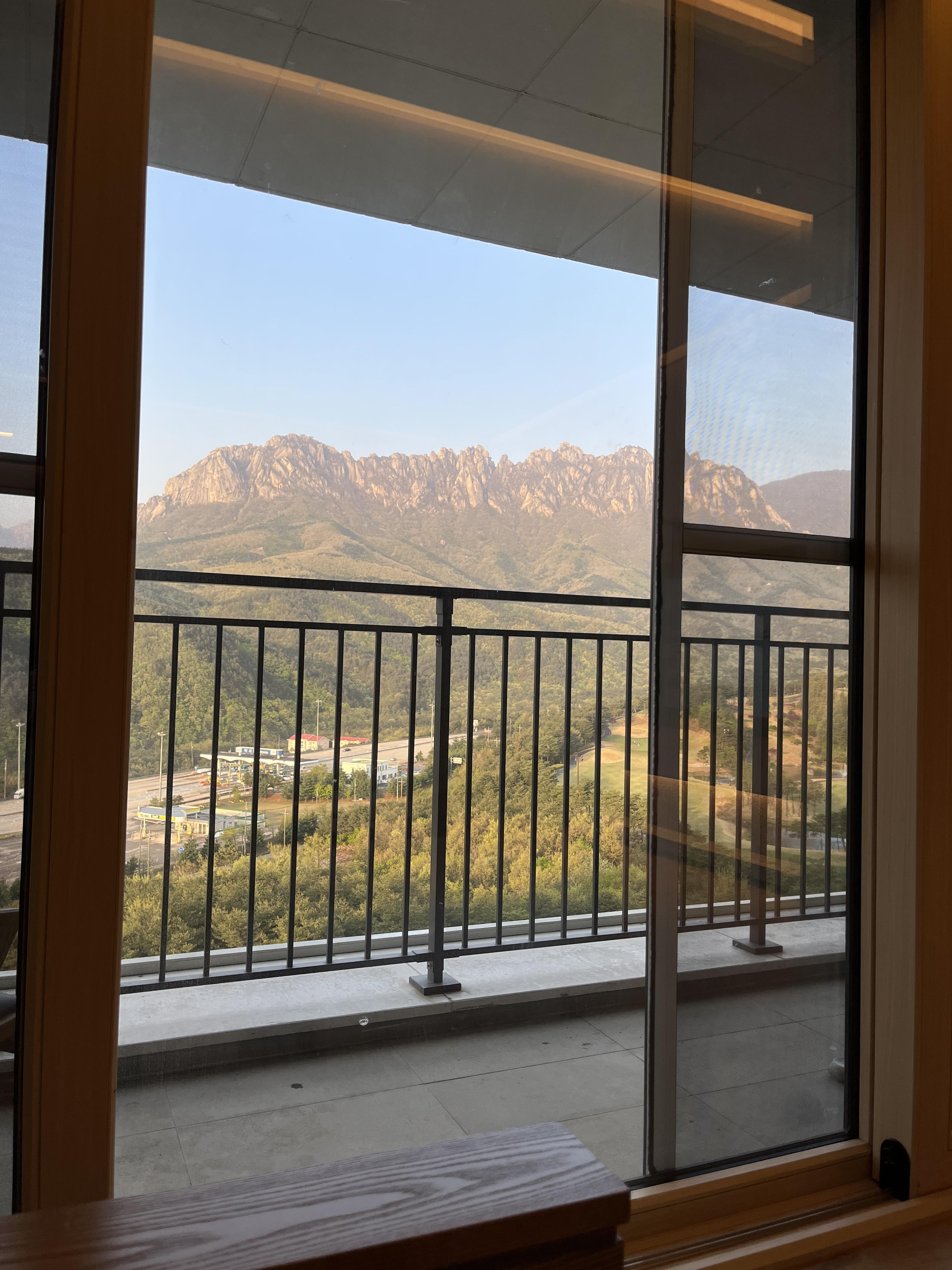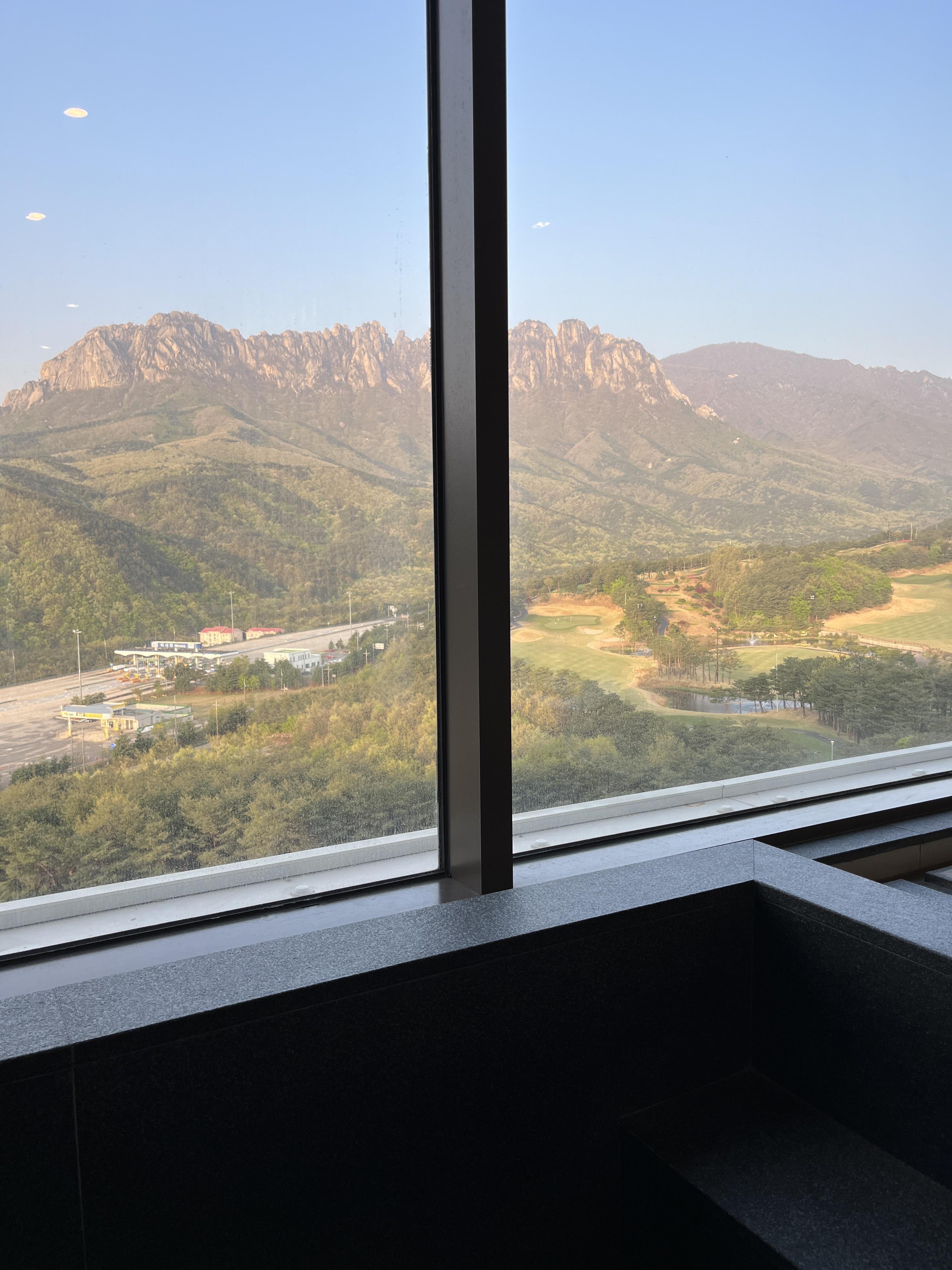 사진에 잘 안담겨 아쉬웠지만, 방에 있는 내내 눈이 호강했답니다. 심지어 엠브로시아에서 본 울산바위뷰 보다도 더 이뻤고 침대에 누워서도 보고 거실 쇼파에 누워서도 보고 스파룸에 누워서도 볼 수 있어 매력적이었습니다.